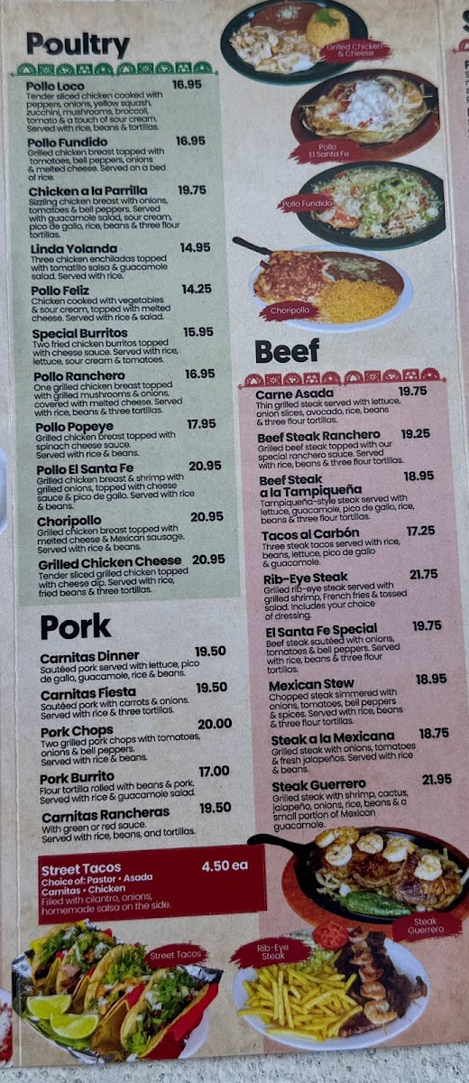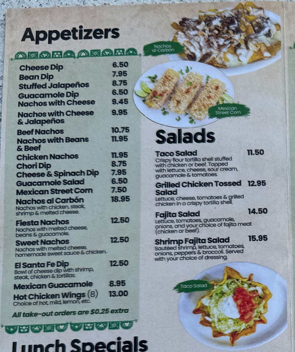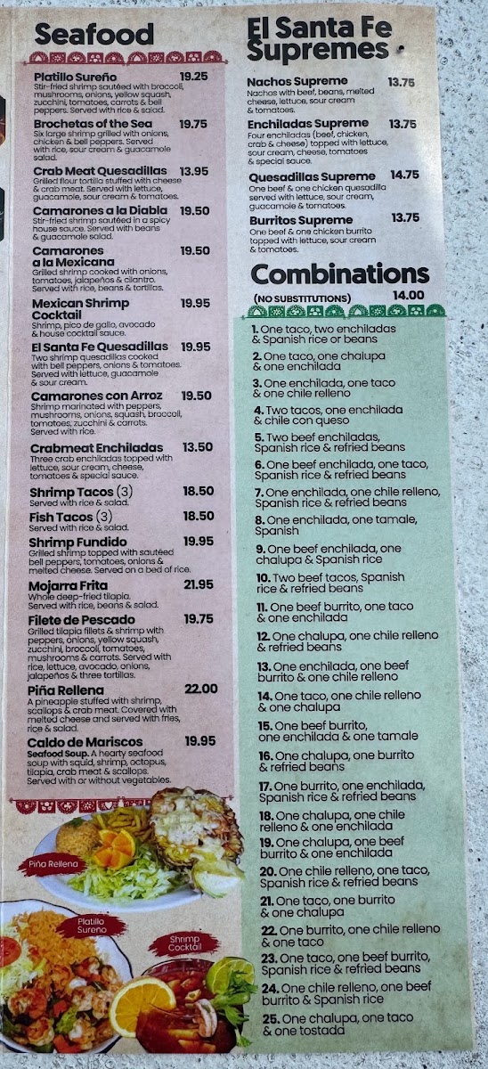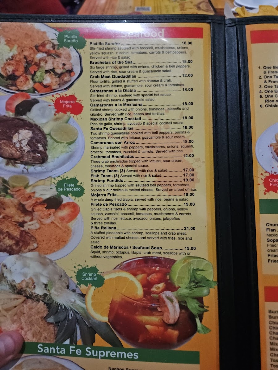 When you step into Santa Fé Mexican Grill Menu, you're in for a treat filled with rich, bold flavors and vibrant dishes. Nestled at 800 Clearwater Largo Rd in Largo, FL, this spot is perfect for anyone craving a flavorful Mexican experience. From the moment you glance at the menu, you're greeted with a variety of mouthwatering options, each dish crafted to perfection. Whether you're in the mood for sizzling fajitas, a hearty burrito, or a refreshing margarita to wash it all down, there's something for everyone. The combinations of spices and fresh ingredients will transport your taste buds straight to the heart of Mexico.